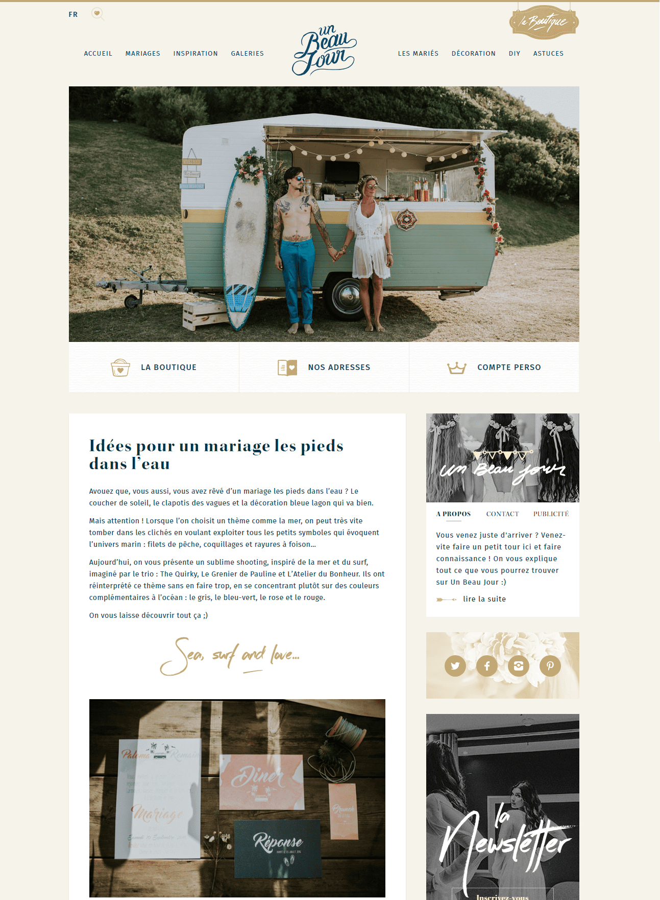 Category: press press 7 September 2018 Vogue – Best Wedding Photographer Continue reading press 15 March 2018 Sony Ambassadors Continue reading press 26 June 2017 Best wedding trailer award Continue reading press 7 June 2017 Seen on – Un Beau Jour – A beach wedding Continue reading press 6 October 2016 Seen on – La Mariée Aux Pieds Nus – An engagement session in the mountains Continue reading press 23 December 2015 VU SUR – With A Love Like That – Une séance en noir et blanc à Paris Continue reading Prev Page1 2 3