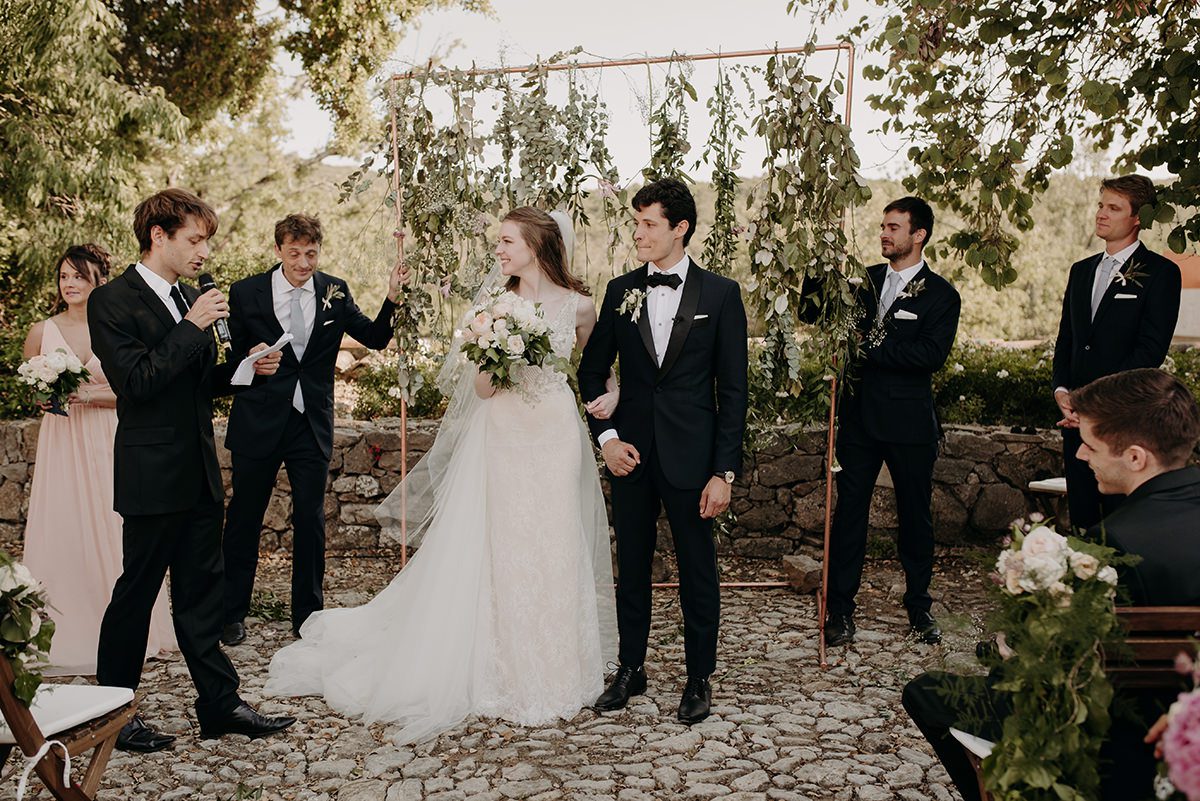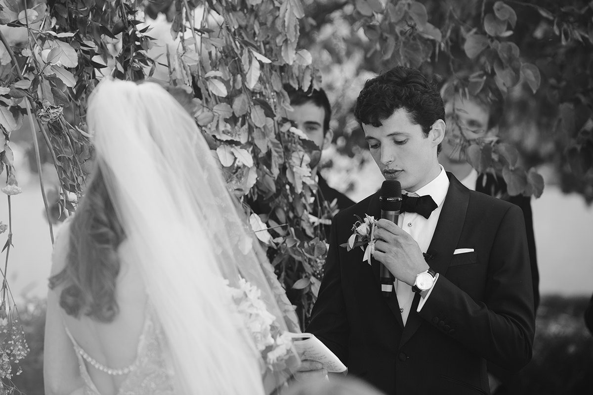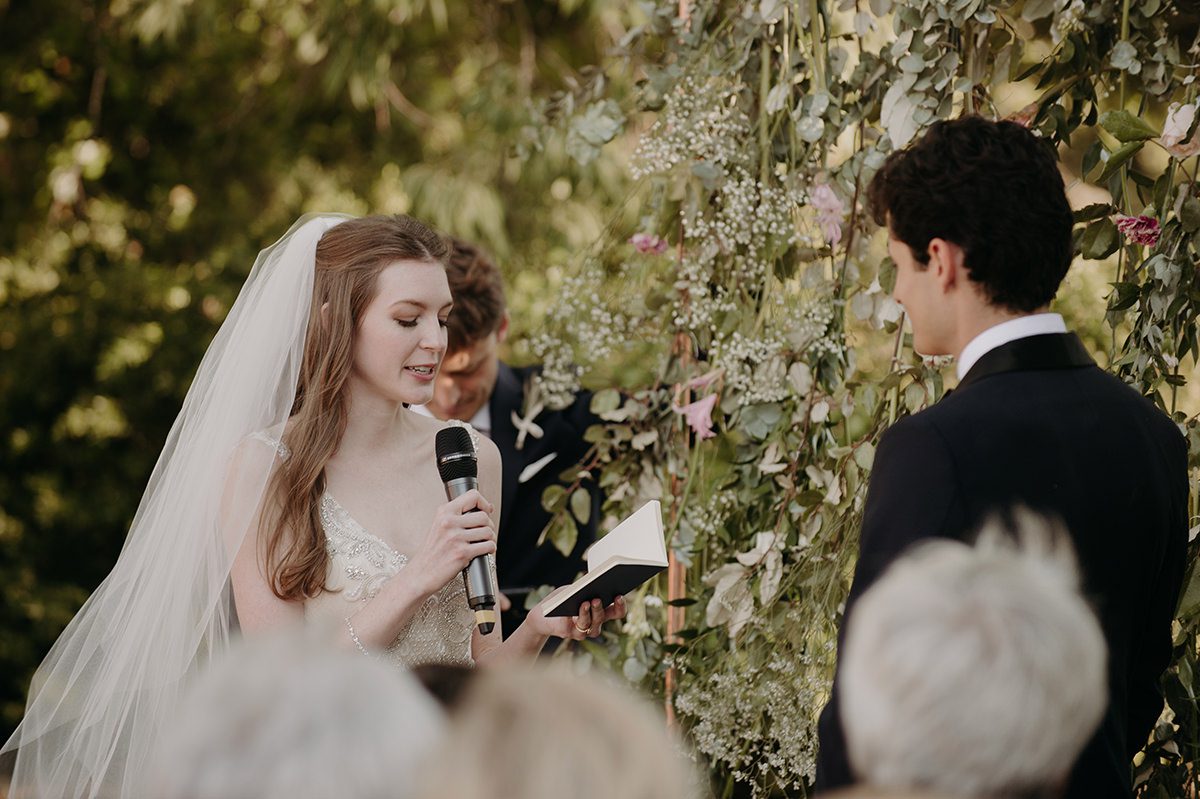 Ashley et Thibault ont échangé leurs vœux au cours d'une cérémonie laïque intime. Le mélange des langues, anglais et français, a donné à la célébration une dimension unique, symbolisant l'union de leurs deux mondes.